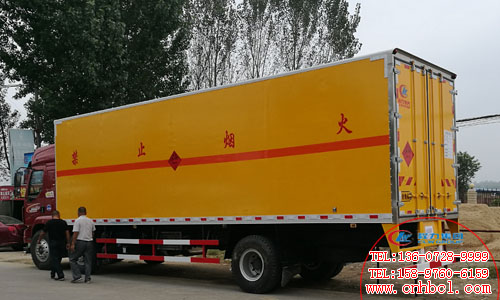 江西某公司客戶訂購的國五東風柳汽乘龍前四后四易燃液體廂式運輸車外板采用1.2MM厚冷軋板一次成型的百葉窗,內飾為導電性能良好的鋁板,有透氣孔,內襯為矩形管骨架牢固穩定,內部為5厘米透氣,防潮,阻燃泡沫板,經過現代化工藝復合而成。廂內有固定貨物的臥環,配有車載專用煙霧報警器和后門防盜器,有靜電帶,滅火器,防火罩。整車國標反光標示及警告標志。主要運輸介質為三類危化品,包括油漆涂料等.廂體中間一雙開側門.