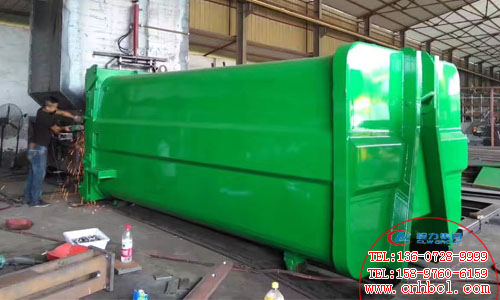 聯(lián)體式壓縮垃圾箱是用于垃圾收集,轉(zhuǎn)運(yùn)(通過車廂可卸式垃圾車)的環(huán)衛(wèi)設(shè)備,裝備有壓縮機(jī)頭,車箱,液壓轉(zhuǎn)動系統(tǒng)和電氣控制系統(tǒng),垃圾通過翻轉(zhuǎn)機(jī)構(gòu)從填料口倒入,以壓縮推頭壓放車廂內(nèi),壓放時(shí)通過特俗結(jié)構(gòu)破碎垃圾,壓縮推頭通過兩支油缸驅(qū)動,系統(tǒng)壓力可調(diào)到較大值,因而裝載容量比一般環(huán)衛(wèi)設(shè)備大,裝卸垃圾時(shí)既不污染環(huán)境,以減輕了清潔工人的勞動強(qiáng)度。