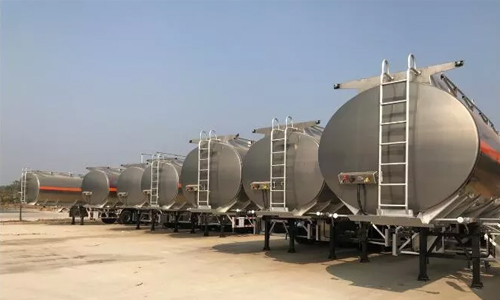 程力鋁合金高端罐車在陽光下熠熠生輝,漂亮大氣上檔次。