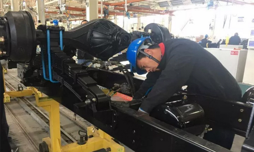 高級研修班的董事長們現場觀摩程力專用底盤生產流水線。