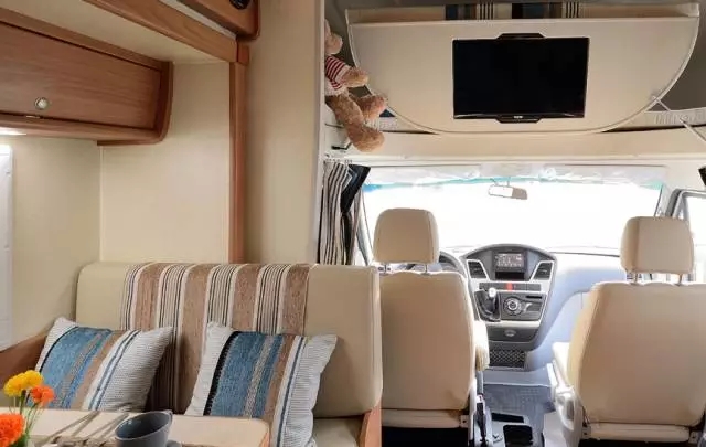駕駛室上方配有頂部雙人床和上翻式26寸液晶電視。