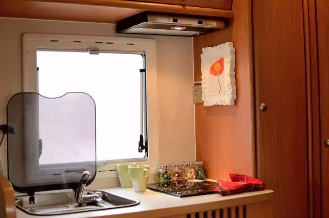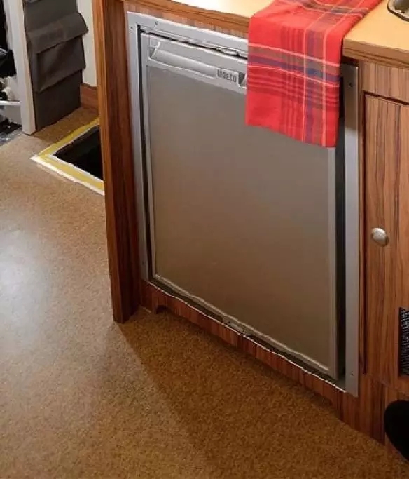 灶臺下方內置一臺車載專用80L冰箱,在烈日炎炎的夏天絕對是一件必備神器。