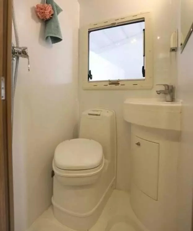 衛生間頂部還提供了一個可供通換氣的排風扇,保持衛生間內空氣的流通。