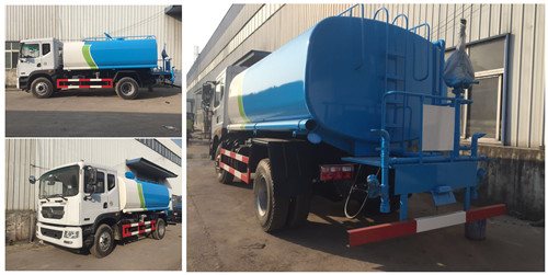 東風(fēng)多利卡D9灑水車上裝配置:罐體采用4mm厚武鋼優(yōu)質(zhì)碳鋼板制作,容積12立方,前沖(噴)后灑,帶側(cè)噴,罐體后帶工作平臺(tái),平臺(tái)上安裝綠化灑水炮,灑水炮可全方位旋轉(zhuǎn),可連續(xù)調(diào)成直沖狀、大雨、小雨、毛毛雨,帶安全護(hù)欄,配備全國(guó)質(zhì)量評(píng)比第一名的杭州威龍大功率專用灑水泵,泵可自吸自排,安裝過(guò)濾網(wǎng),帶消防接口,可通過(guò)消防栓進(jìn)水,帶自流閥,隨車選裝20米綠化卷盤,可噴灑農(nóng)藥,罐體金屬漆。