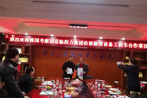 本報(bào)訊(特約通訊員呂海沙、蔣傲雪報(bào)道) “元宵良辰共佳節(jié),海闊天涯明月升”, 正當(dāng)中國(guó)人民沉浸在傳統(tǒng)元宵佳節(jié)闔家歡樂(lè)的時(shí)刻,一衣帶水的鄰邦韓國(guó)株式會(huì)社社長(zhǎng)李啟碩一行商務(wù)考察團(tuán),給中國(guó)最大的專汽制造企業(yè)程力集團(tuán)送來(lái)了佳節(jié)最好的禮物---中韓加強(qiáng)技術(shù)交流合作達(dá)成全面戰(zhàn)略合作伙伴關(guān)系,并擬定共同建設(shè)全球最大的除雪設(shè)備工程車生產(chǎn)基地框架協(xié)議。