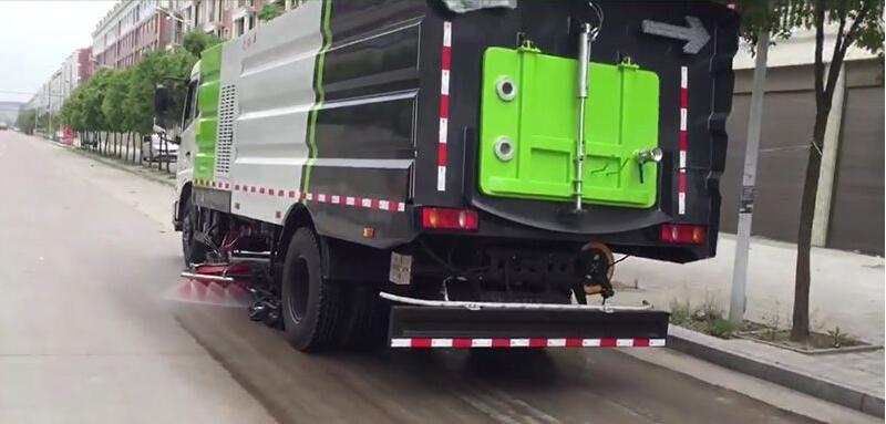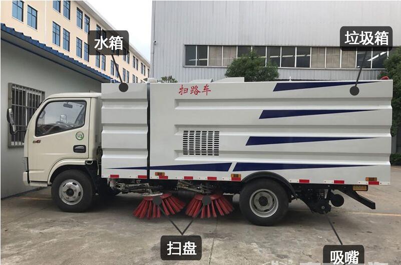 掃路車裝有四個掃刷,后置吸嘴,左、右前掃刷將角落的垃圾由外向內,集中掃向中刷能清掃到的范圍,中刷將垃圾清掃至吸嘴前方,由吸嘴把垃圾吸入到垃圾箱內存放。