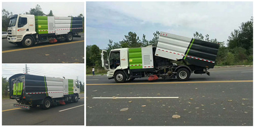 國五東風柳汽洗掃車上裝配置 副發動機采用《康明斯170馬力》,自動離合器驅動風機和高壓水泵,有效減少風機啟動和停止時對發動機的沖擊,低噪音,低油耗量和節省成本等優點。采用洛陽北玻品牌,大功率耐磨免維護離心風機,無嗓音,效率高風量大,使用壽命長。高壓水泵采用合資國際知名德國品孚,T7012IR型柱塞柱,壓力高,最高壓力可達到16MPa。清水箱充分利用車載空間,容積達到9個方,內置水位報警器。垃圾箱采用雙層內膽不銹鋼結構,內部加裝過濾網板,有效地防止樹葉,塑料袋之類的輕飄物堵塞風口及灰塵排出,內置污水報警系統,可通過后門處污水閥方便的將污水排出下水道,最大限度的利用了垃圾箱裝載垃圾的空間,廂體采用傾翻卸料,帶高壓沖洗自潔裝置。 本車最高時速可達到 115Km/h 清掃效率:≥95% 最大吸入粒度:100mm 垃圾箱最大卸料角:45度 最大清掃寬度:3.5m 最大清掃能力70000mh 液壓油箱容量:60L 副發動機工作轉速:1700-2000r/min 溢流壓力:16MPa 垃圾箱容積:7個方 水箱容積:9個方.