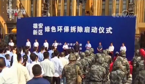 據中央電視臺現場直播的精彩畫面及主播的報道,在這次雄安新區的首批綠色環保拆除中,程力汽車集團提供的抑塵車擔當了拆除現場的重要的主角,隨著液壓剪、水壓刀、金剛鋸、破拆機器人、移動破碎機等高科技手段次第展開,程力抑塵車CLW-100噴灑雨霧降塵效果顯著,展露絕活令人稱贊。