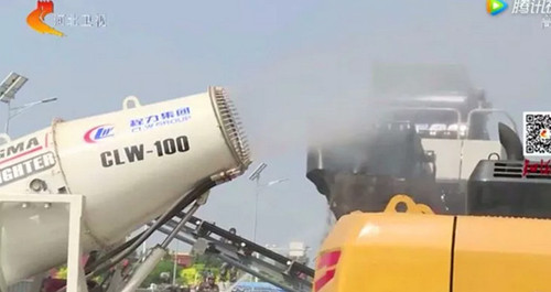 5月9日上午中央電視臺CCTV13臺,現場重點報道雄安新區綠色環保第一拆中,程力抑塵車CLW-100智能噴霧降塵大顯身手,為高科技環保拆遷帶來嶄新變化,為綠色經濟發展增添了光彩。