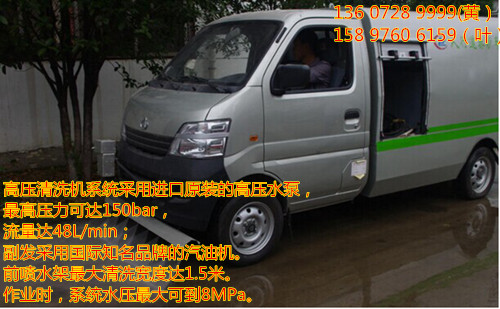 長安清洗車底盤采用新款單排駕駛室,2900軸距,長安JL473Q鋁合金汽油機(國五)98馬力,5檔變速箱,前盤后鼓剎車,175/70R14LT真空胎。