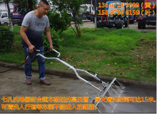 4、七孔洗地器配合隨車配送的高壓管,最大清洗距離可達15米。可清洗人行道等車輛不能進入的路面。
