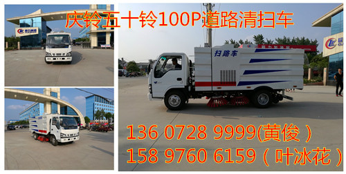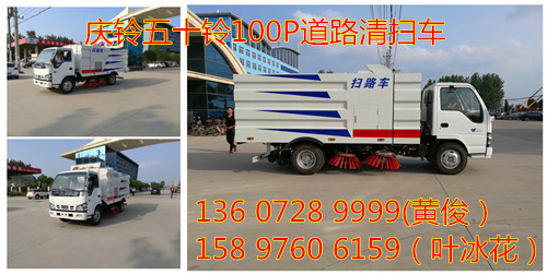 慶鈴五十鈴100P道路清掃車上裝標配:帶4個掃盤、江鈴五十鈴副發動機、三洋馬達、施耐德控制開關、海普瑞斯電磁閥組、無級變速自動離合器、免維護離心式自動風機、不銹鋼垃圾箱、尾部LED箭頭指示燈、中聯北極星電子水泵,手動泵應急系統、垃圾舉升自卸功能。