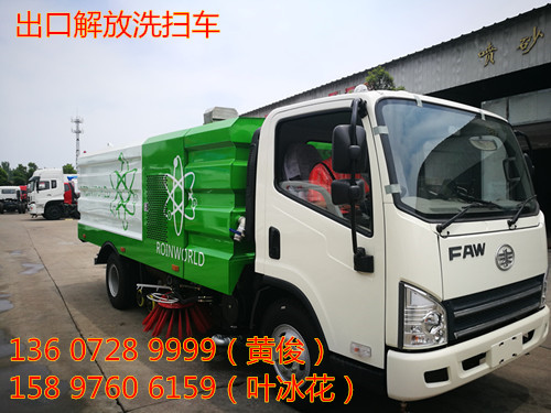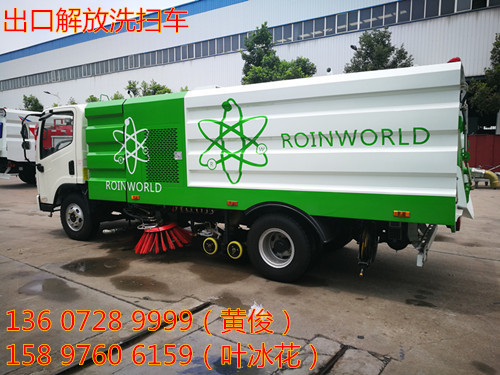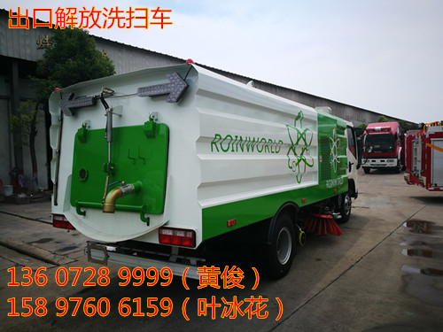 洗掃車集掃路車與高壓清洗車的功能于一體,清掃路面的同時,對路面進行高壓清洗及刷洗,并將垃圾及清洗污水收集于垃圾(污水)箱內。經五十鈴高壓洗掃車作業后的路面,可達到無垃圾、無灰塵、無污漬、無污水的效果,從而極大地提高城市道路的清潔質量,解決了環衛行業的國際性共同難題,下圖為出口解放洗車圖片參數: