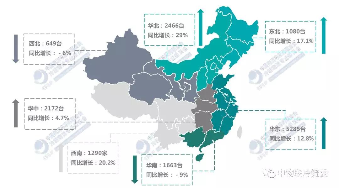 華東地區經濟發達,一直是我國冷鏈物流需求最為旺盛的區域,華東包含了蔬菜種植交易、肉類生產大省-山東;高端食品消費集中地-上海、杭州、南京等大型城市。上半年,華東地區冷藏車同比增長29%,繼續領跑全國,約占全國總量的35%。