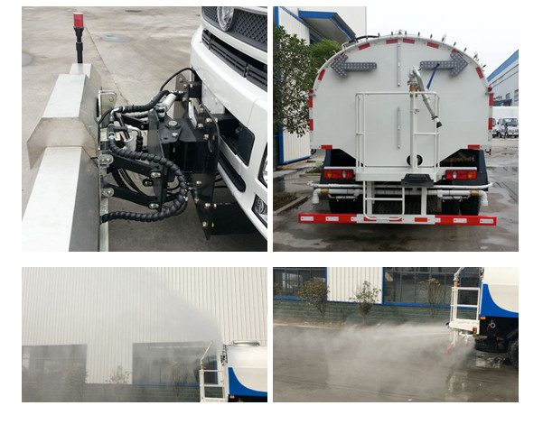 東風天錦清洗車整車型號為程力威牌CLW5160GQXD5型清洗車是一種雙發動機、雙水泵清洗車,是在標準二類底盤的基礎上,加裝高壓沖洗系統、低壓沖洗系統,由機械、液壓、電器三部分合為一體的專用沖洗作業車。本車具有獨立的高、低壓兩套水路系統,為清洗車工作提供壓力水源。其工作原理是:利用高壓水泵產生的高壓水,經噴水架的高壓噴嘴噴出,利用高壓水流的動能,以高壓力、低流量的方式清洗,強力去污,高效節水,能將路面的陳舊污漬清洗干凈;或高壓水經左(右)角噴噴出,清洗路緣、人行道及護欄隔離區;使用高壓噴槍還可清洗路標、廣告牌、高架路等;噴霧系統具有強大的噴霧降塵、噴撒空氣消毒劑及調節空氣濕度功能。