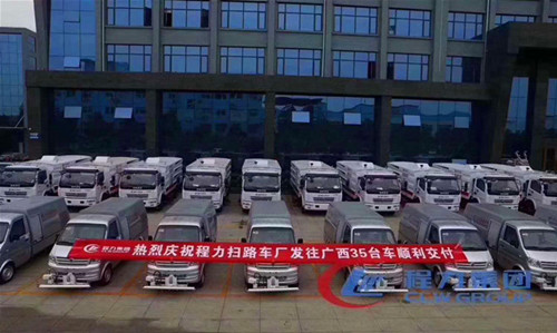 我公司環(huán)衛(wèi)車產品再陽佳績,由廣西某環(huán)衛(wèi)部門在我公司采購的一批共35臺東風多利卡洗掃車和長安人行道養(yǎng)護車(路面清洗車)順利交付。