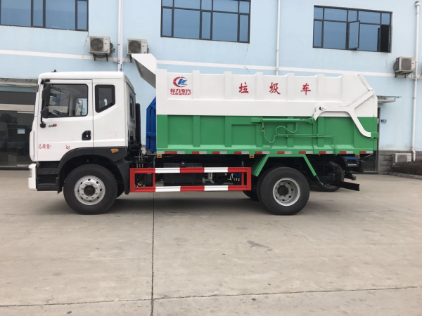 2、國(guó)五東風(fēng)多利卡D9壓縮式對(duì)接垃圾車(12方),產(chǎn)品其他相關(guān)說(shuō)明: 該車操作系統(tǒng)是有液壓控制系統(tǒng)來(lái)完成,控制方式可以為手動(dòng)或電啟控。壓縮垃圾站在將垃圾壓縮成塊后將垃圾箱體垂直舉起,并打開壓縮箱排泄門,這時(shí)垃圾車箱體后門向上旋轉(zhuǎn)開啟,垃圾車后門與壓縮箱后門對(duì)接,之后垃圾塊被壓縮箱內(nèi)的推板水平推進(jìn)到垃圾車箱體內(nèi),完成垃圾裝載后關(guān)閉垃圾車后門,將垃圾運(yùn)到垃圾處理地進(jìn)行傾卸。改垃圾車的收運(yùn)方式是目前國(guó)內(nèi)廣泛采用的垃圾壓縮站垃圾轉(zhuǎn)運(yùn)方式,可以實(shí)現(xiàn)一車多站,大大降低了配備成本和空間等等。其專用裝置的功能均以汽車發(fā)動(dòng)機(jī)為動(dòng)力,通過(guò)液壓機(jī)構(gòu)手動(dòng)或電控,氣控來(lái)實(shí)現(xiàn)。車輛的箱體采用優(yōu)質(zhì)碳鋼板全密封焊接結(jié)構(gòu),具有強(qiáng)度高,重量輕,不產(chǎn)生二次污染等優(yōu)點(diǎn)。