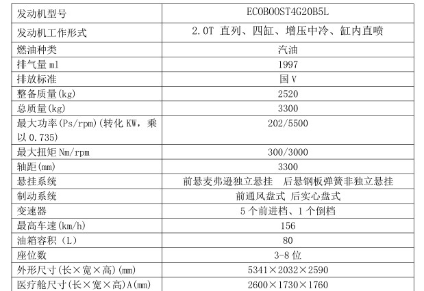 整車技術參數 : CLW5037XJHJ5  型救護車