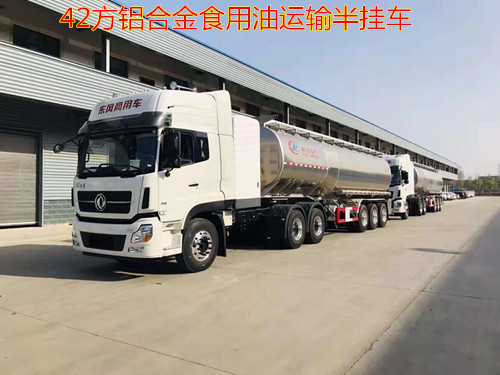 42方鋁合金食用油運輸半掛車匹配天龍CNG新能源天然氣牽引頭