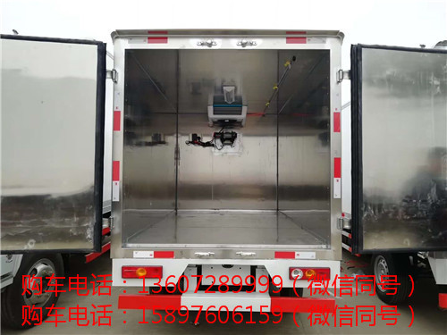 福田伽途無害化處理冷藏運輸車改裝要求:廂體采用外玻璃鋼板,內不銹鋼板,底板不銹鋼平板,安裝漢雪L-Z7制冷機組,紫外線燈,噴霧消毒,電動葫蘆拖拽系統等等。