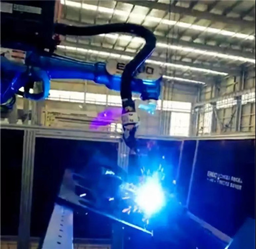 程力公司環衛專汽新增添的機器人自動焊接生產線,投入運營