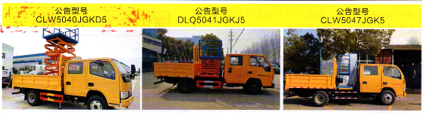 | 東風凱普特剪叉式高空作業車 | CLW5040JGKD5(剪叉部份在車廂內) | EQ1041DJ3BDF | 3308 | 玉柴 | 85kw/115ps | 6米8米10米12米 |