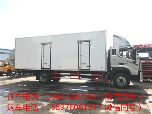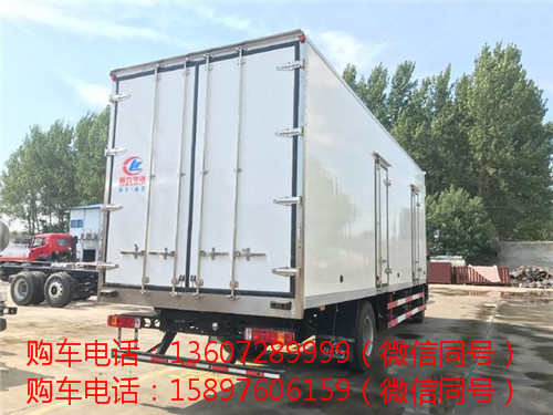 福田歐馬可S5新款6.8米冷藏車箱體內外高強度玻璃鋼,中間聚氨酯發泡保溫,箱體厚度8cm,上裝箱體配置:整車尺寸:8995×2600×3850mm,廂體尺寸:6600×2450×2500 mm,箱體鋁合金包邊,不銹鋼門飾件,不銹鋼鎖件,箱體頂部2個LED照明燈,箱體底部安裝新式鋁合金通風導軌。整車總重15噸,額定載質量7.995噸。