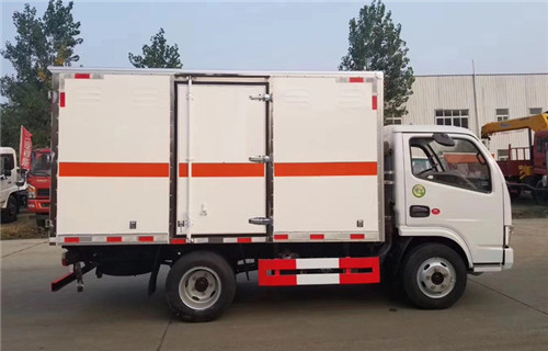 東風(fēng)牌廂體3.5米雜項(xiàng)危險(xiǎn)品廂式運(yùn)輸車整車尺寸(mm):5260×1940,1980×2800,箱體尺寸(mm):3480×1800×1750 ,箱體采用拼裝結(jié)構(gòu),外厚度為1.5毫米厚度武鋼冷軋鋼板,中鋼骨架,內(nèi)壁為鋁合金板,箱體厚度為5公分,箱體外表上方采用模壓成型帶防水通風(fēng)功能百葉窗,固定貨物的臥式拉環(huán)鉚接在鋼骨架上,牢固可靠。門內(nèi)安裝高精度限位裝置和駕駛室內(nèi)部報(bào)警器相連接,杜絕箱門未鎖緊情況。箱體外部箱門打開處安裝防自關(guān)門的限位風(fēng)勾,箱體外觀涂裝灰色油漆,駕駛室內(nèi)部安裝安全報(bào)警器連接后部箱體,對(duì)箱體內(nèi)部實(shí)施安全監(jiān)控。