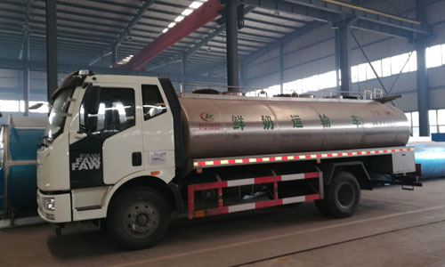 國五解放J6L鮮奶運輸車10方上裝配置參考:奶罐車容積:10方 ,罐體材料為4mm的304-2B食品級不銹鋼板,標配3倉,每倉配備PIC清洗裝置,保溫功能24小時介質溫度升降≤1°C ,保溫廂體厚度80mm聚氨 酯發泡,外包為1mm的201不銹鋼板,外觀為不銹鋼本色。