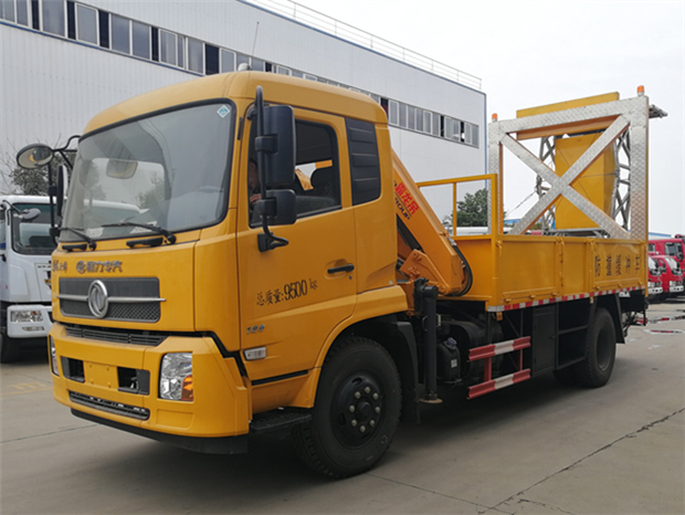 4、駕駛室后部裝有3-4噸折臂吊機,增加整車輔助功能,可用于客戶對施工中的重物進行吊運。