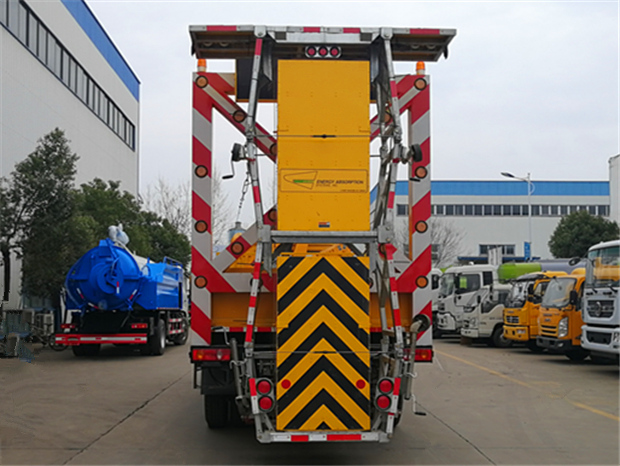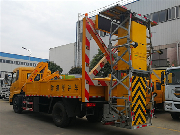 東風(fēng)天錦防撞緩沖車上裝技術(shù)參數(shù):防撞緩沖車的防撞緩沖吸能模塊主要由車載防撞緩沖墊和導(dǎo)向標志架組成,充當(dāng)施工作業(yè)車輛后方的緩沖衛(wèi)士。如若發(fā)生追尾事故,能夠在肇事車輛和前方施工作業(yè)區(qū)域之間構(gòu)建一個緩沖區(qū)域,通過機具結(jié)構(gòu)變形吸收撞擊的能量,最大限度地降低被保護人員及設(shè)備遭到碰撞的幾率。