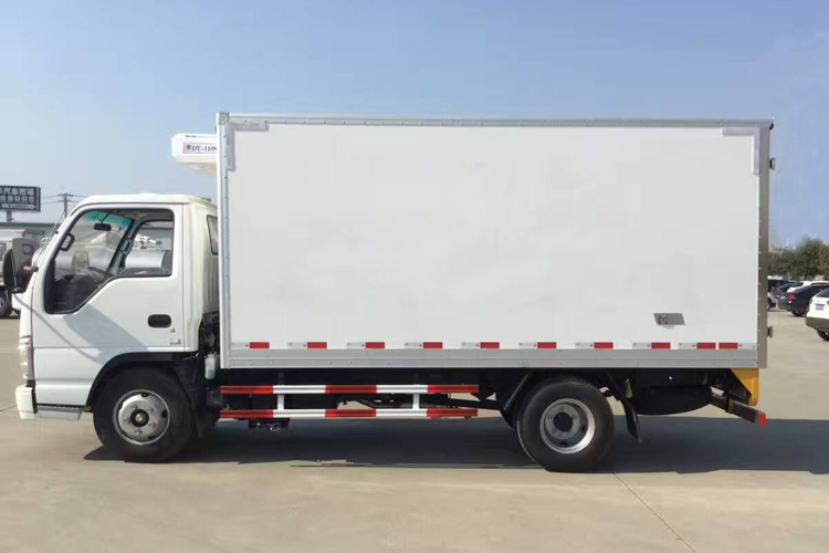 慶鈴五十鈴3噸冷鏈運輸車上裝配置:整車尺寸(mm):5995×2070,2130×2690,單排箱體內尺寸(mm):4100×1900×1800。廂體選用8cm厚度玻璃鋼加聚氨酯發泡保溫箱體結構,一次性模壓成型技術,解決了保溫箱體的密封不好的問題,各個連接處采用發泡和密封膠柱塞,箱體內部底部采用鋁質花紋板鋪設,牢固,美觀,易清洗,達到國家A級標準保溫等級。加裝漢雪、華泰、韓亞、開利、冷王等品牌非獨立制冷機組,機組溫度選擇范圍:0度、-5度、-10度、-15度。