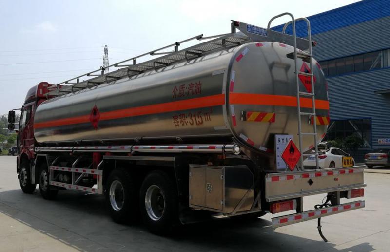解放前四后八31方鋁合金油罐車罐體容積:31立方,上戶噸位:21.06噸,總質量:32噸,整車外形尺寸:11.76x2.5x3.5米,罐體尺寸:8.75x2.48x1.78米,解放前四后八31方鋁合金油罐車圖片配置參考: