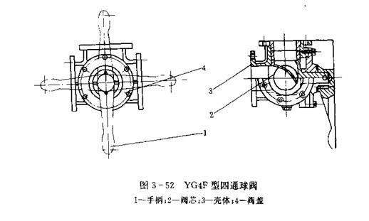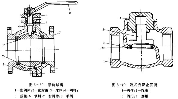 (3)浮動球閥(圖3-39)在氣壓排液系統中常被采用。這種閥的球體在介質通過時,能在介質壓力作用下向出口端產生少量們移,壓緊密封圈,提高密封性。但不能承受較大的壓力。