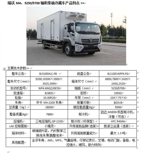 福田瑞沃廂長7.6米冷藏車整車尺寸:BJ5185XLC-FB型冷藏車,底盤型號:BJ1185VKPFK-FG,總質(zhì)量:18000kg,額定載質(zhì)量:9990kg,整備質(zhì)量:7880kg,整車外形尺寸:9200,10300×2600×3925,3995mm,廂體尺寸:6800,7800×2420×2450,2520mm,駕駛室準(zhǔn)乘人數(shù)(人):2人,軸距(mm):5250,5700mm,福田瑞沃廂長7.6米冷藏車福利來了,安全營運(yùn)已下發(fā)!