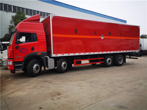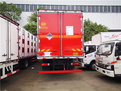 國五解放前四后六廂長9.5米雜項危險物品廂式運輸車廂體尺寸:9500×2500×2600 mm,整車尺寸:11995×2550×3995 mm,廂體內外采用平面彩鋼板廂體,底板平面碳鋼板,鋪裝防靜電膠皮及車載專用煙霧報警器和后門防盜器,有靜電帶,滅火器,防火罩,整車國標反光標及警告標示。