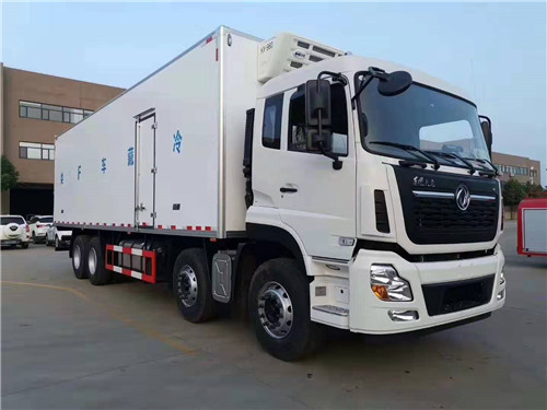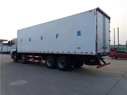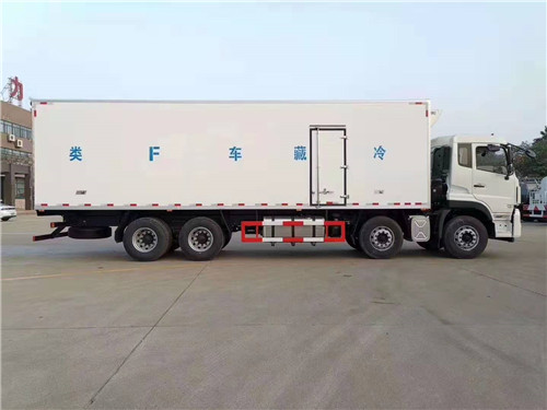 東風天龍前四后八廂長9.6米冷藏車整車尺寸:11980*2600*3990mm 廂體尺寸:9400*2440*2450mm 搭載東風雷諾11.2L排量450馬力發(fā)動機,法士特12檔變速箱,9.2噸輕贏版底盤,東風天龍前四后八廂長9.6米冷藏車容積56立方米,保溫箱采用最新保溫技術(shù)工藝制作,最低溫度可達到零下18度,制冷效果強勁。