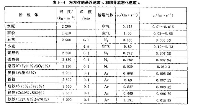 表示。表3-4列出了部分料粒體的臨界流態(tài)化速度