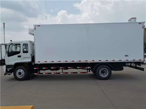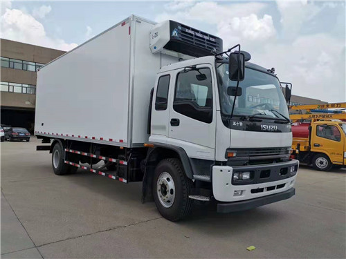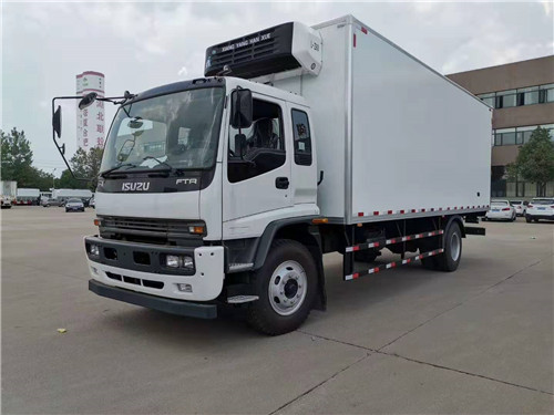 出口慶鈴五十鈴FTR冷藏車新款一排半FTR豪華可翻轉駕駛室;發動機—慶鈴五十鈴4HK1-TC50國五4缸205馬力發動機/排量為5.2L/功率為151Kw/扭矩為650N.m;變速箱—五十鈴MLD-6Q型6檔手動變速箱;其它統一配置為:有空調;有方向助力;有中控門鎖;有電動門窗;有ABS;氣剎(斷氣剎);前橋6.3噸/后橋13噸;輪胎為10.00R20鋼絲胎;有大燈高低調節;有剎車自動調整臂;有防飛濺裝置;有三角楔;有反光背心;其它標配!有3種廂體尺寸可選;1、軸距為5000mm;廂體內部尺寸為6415X2250X2400(mm)容積為35立方;總質量16000kg/額定載質量8750kg/整備質量7055kg;2、軸距為5550mm;廂體內部尺寸為7180X2250X2400(mm)容積為39立方;總質量16000kg/額定載質量8650kg/整備質量7155kg;3、軸距為5800mm;廂體內部尺寸為7345X2250X2400(mm)容積為40立方;總質量16000kg/額定載質量8630kg/整備質量7175kg。上黃牌(B證可以駕駛)。下圖為出口慶鈴五十鈴FTR冷藏車匹配漢雪LZ60制冷機組圖片展示: