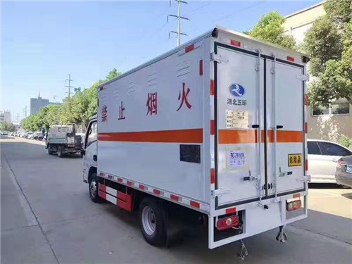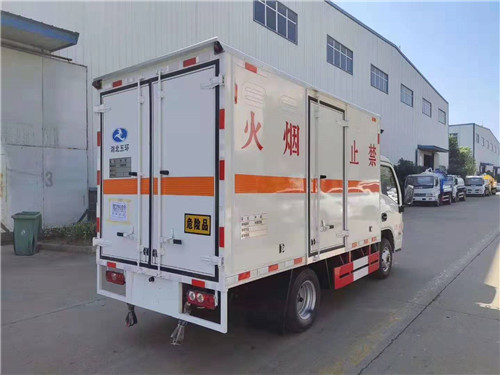 躍進柴油版爆破器材運輸車廂體配置:嚴格按照公告尺寸制作,外板采用1mm厚冷軋板有一次性成型的百葉窗,內飾為導電性能良好的鋁板有透氣孔,內襯為矩形管骨架牢靠穩定,內部填充為透氣防潮阻燃的擠塑板,四種材料經現代工藝復合而成,廂體外部上下鋁合金型材包邊,底板和車廂前下部鋪橡膠皮,后門雙開,右側中部單開門,霧報警器和門防盜報警器,嚴格按照國家危險品相關法規張貼。