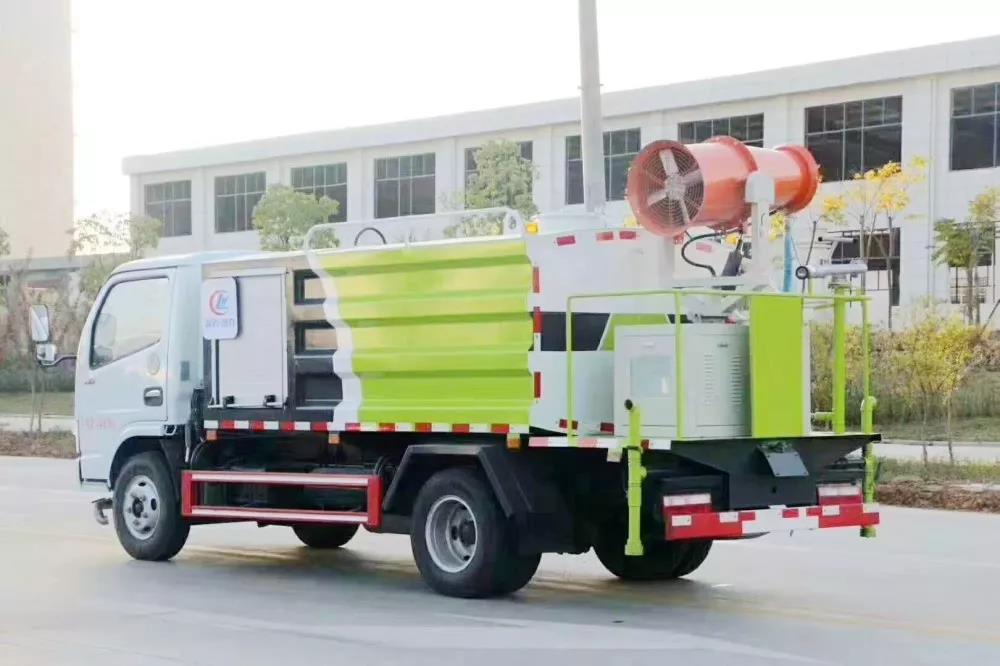 東風(fēng)小多利卡4.5方抑塵車 型號CLW5042TDY5,采用方形罐體,容積可達(dá)4.5立方以上,霧炮機(jī)射程可達(dá)30米以上,可上藍(lán)牌。采用朝柴102馬力發(fā)動(dòng)機(jī),達(dá)到國五排放標(biāo)準(zhǔn),配置前沖、后灑、后工作平臺(tái)、綠化灑水炮、30米射程的風(fēng)送式噴霧機(jī)組。