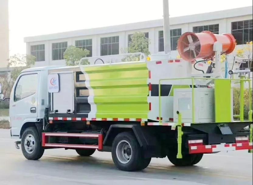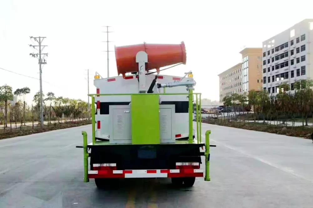 多功能抑塵車主要結(jié)構(gòu)是在行走機(jī)構(gòu)上加裝大容積水罐、高效遠(yuǎn)程霧炮系統(tǒng)、低壓沖洗灑水系統(tǒng)、綠化灑水高炮(選裝,在罐體前端)、液壓系統(tǒng)、專用的作業(yè)和行走電控系統(tǒng)等改裝而成。功力強(qiáng)、射程遠(yuǎn)、穿透力強(qiáng)、霧粒附著力強(qiáng)、覆蓋范圍廣、可以實(shí)現(xiàn)精量噴霧。