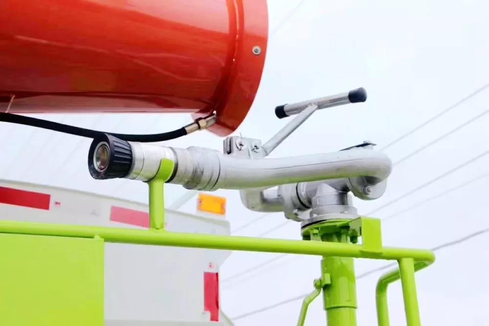 后部工作平臺(tái)上安裝綠化灑水炮(炮噴射形狀可調(diào)),可調(diào)直沖狀、大雨、中雨、毛毛雨,可連續(xù)調(diào)節(jié)。