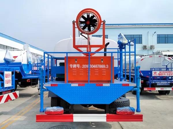 抑塵車的別名也叫霧炮車,因為其外形結構是尾部有一輛巨炮,所以霧炮車這個稱呼知名度會更高一些。我們需要先了解霧炮車是由電機、高壓風機、水平旋轉裝置、仰角控制裝置、導流筒、霧化噴嘴、高壓泵、儲水箱等主要部件組成。