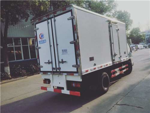 江鈴順達(dá)冷藏車整車型號:CLW5041XLCJ5型冷藏車,底盤型號:JX1041TG25,準(zhǔn)乘人數(shù): 2人,五十鈴柴油發(fā)動機(jī),功率85kw,115馬力,駕駛室翻轉(zhuǎn),ABS,油剎,7.00R16鋼絲胎,選裝方向助力,5檔變速箱,軸距3360(mm),總質(zhì)量:4495kg,整備質(zhì)量:2870kg,額定載質(zhì)量1495kg,整車尺寸:5995×1950×2900(mm),箱體內(nèi)尺寸:4150×1750×1750(mm),藍(lán)牌,廂體內(nèi)外玻璃鋼,8cm高密度聚氨酯保溫,底板為防滑花紋鋁板,后門鎖件為不銹鋼。