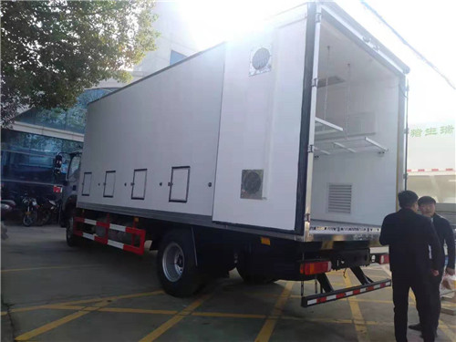 5、通風性雞苗運輸車箱體有多個通風道及百葉窗保證雞苗車的通風效果雞苗運輸車促銷價雞苗運輸車加裝制冷設備與貨柜連通并提供源源不斷的制冷,保證箱體的達到恒溫。