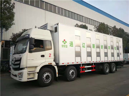 新希望六合通遼新好農牧2號恒溫運豬車已完工,準備發車(可拉種豬,豬仔或豬苗)整車型號:CLW5310XCQB5,福田歐曼新款ETX2490高頂雙臥駕駛室,氣囊座椅,軸距2000+4500+1350mm,整車尺寸:12000×2550×3970mm,廂體尺寸:8660×2340×2540MM 帶原裝空調和方向助力,ABS,中控鎖,電動門窗,電動翻轉,法士特12檔變速箱,剎車自調臂,可調大燈,行駛記錄儀。福田康明斯國五柴油320馬力發動機,12R22.5真空胎。