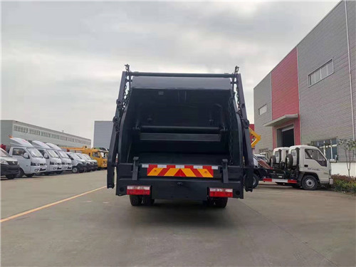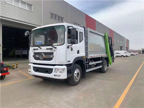 國五多利卡D910方壓縮垃圾車(尾部帶擺臂裝置) 底盤采用東風(fēng)多利卡D9駕駛室,3950軸距,國五康機(jī)180馬力發(fā)動(dòng)機(jī),6檔變速箱,9.00鋼絲胎,雙層大梁,原裝空調(diào)、電動(dòng)玻璃、中控鎖,方向助力,斷氣剎,ABS, 國五東風(fēng)多利卡D9(10方)壓縮式垃圾車圖片展示: