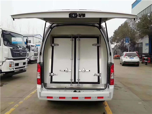 國六福田G9面包型藍牌冷藏車(可選單排/雙排,汽油/柴油),整車尺寸:5380×1920×2285,單排箱體內尺寸:2.94×1.65×1.46米,雙排箱體內尺寸1.68*1.65*1.46米, 汽油發動機:三菱2.4排量160馬力,柴油發動機:福田五十鈴2.8排量110馬力,3110軸距,電動門窗+遙控鑰匙,195R15C真空胎,駕駛室冷暖空調,方向助力,ABS+EBD。國六福田G9面包冷藏車圖片展示: