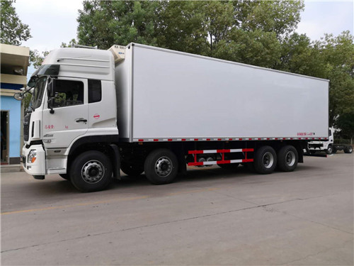 國五東風天龍前四后八廂長9.4米冷藏車箱體尺寸:9400*2440*2450,整車尺寸:11980*2600*3990mm,輪胎11.00R20.陜齒12檔,帶空調,ABS,行車記錄儀,中控鎖,電動門窗。